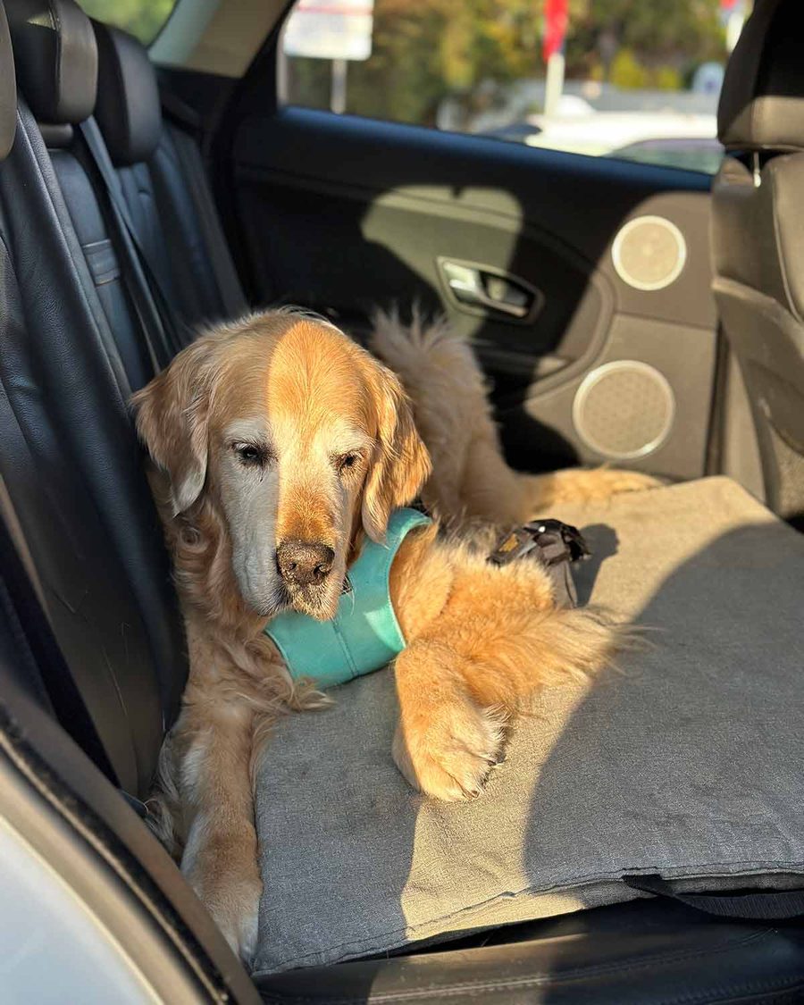 For short trips, I’ll just pop him in the boot which is his preference. He likes to sprawl. But for longer distances, I always belt him up. Safety first!