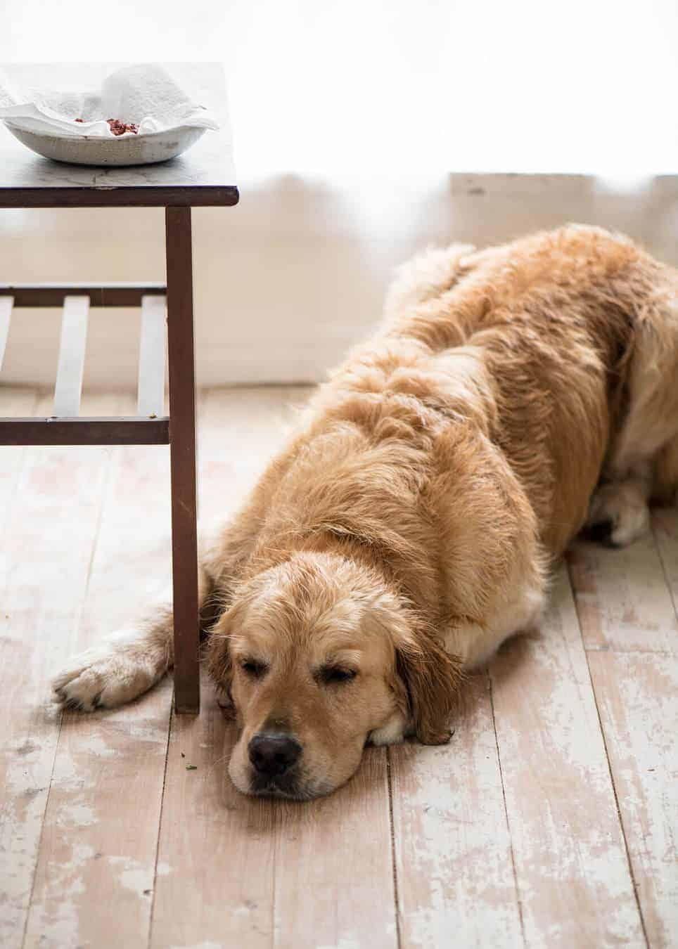 Nowhere to be seen when I was cutting the corn, made an appearance when the bacon was cooking. (PS I shot this recipe pre Cindy Crawford beauty spot in the photo I shared last Friday a.k.a smudge of permanent hair colour on his face)