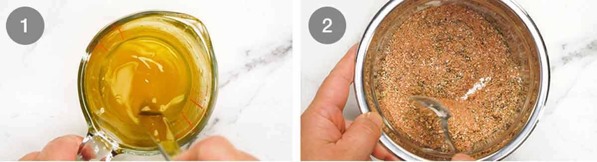 - Seasoning – Mix the butter and garlic in a small bowl. Mix the Creole seasoning in a separate small bowl.