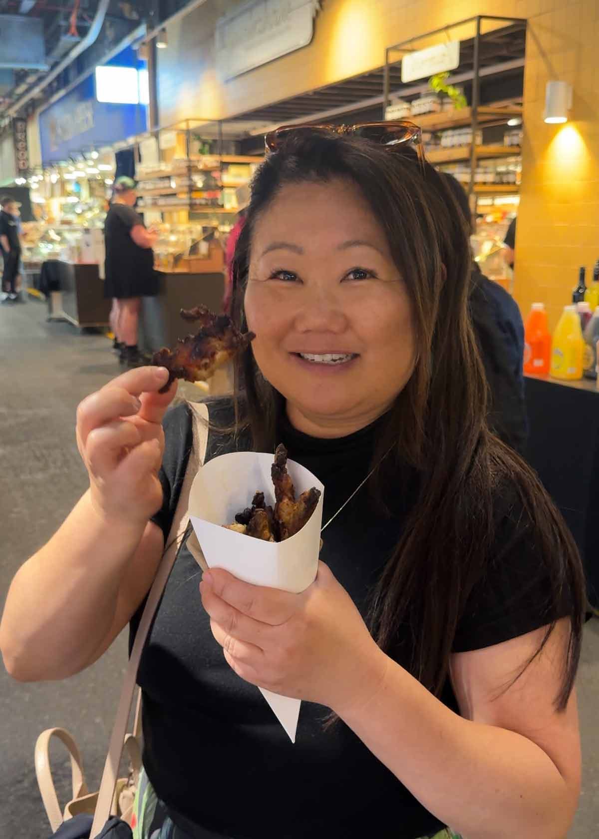 Here I am with JB and Stephen (RTM boss chef) at the Adelaide Central Markets, and there I am looking pretty darn pleased with myself, clutching the chicken ribs!