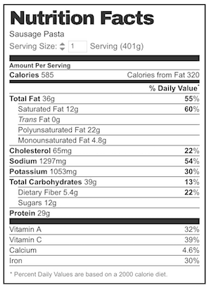 Nutrition Information: