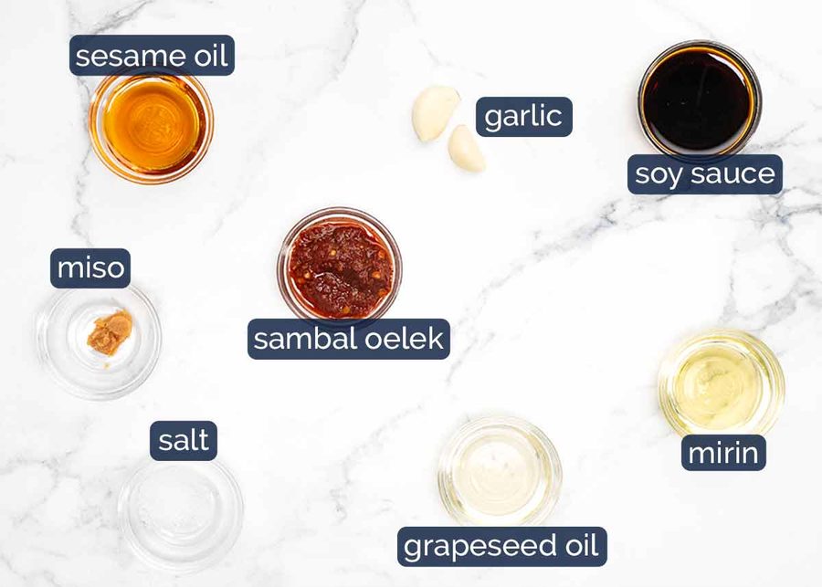 It took a few goes to get the balance of flavours right. I found that using a basic mix of soy + chilli paste + sesame oil was just a bit flat and boring. A touch of mirin and miso paste went a long way to solve this. But don’t worry, there are easy substitutes for both of these.