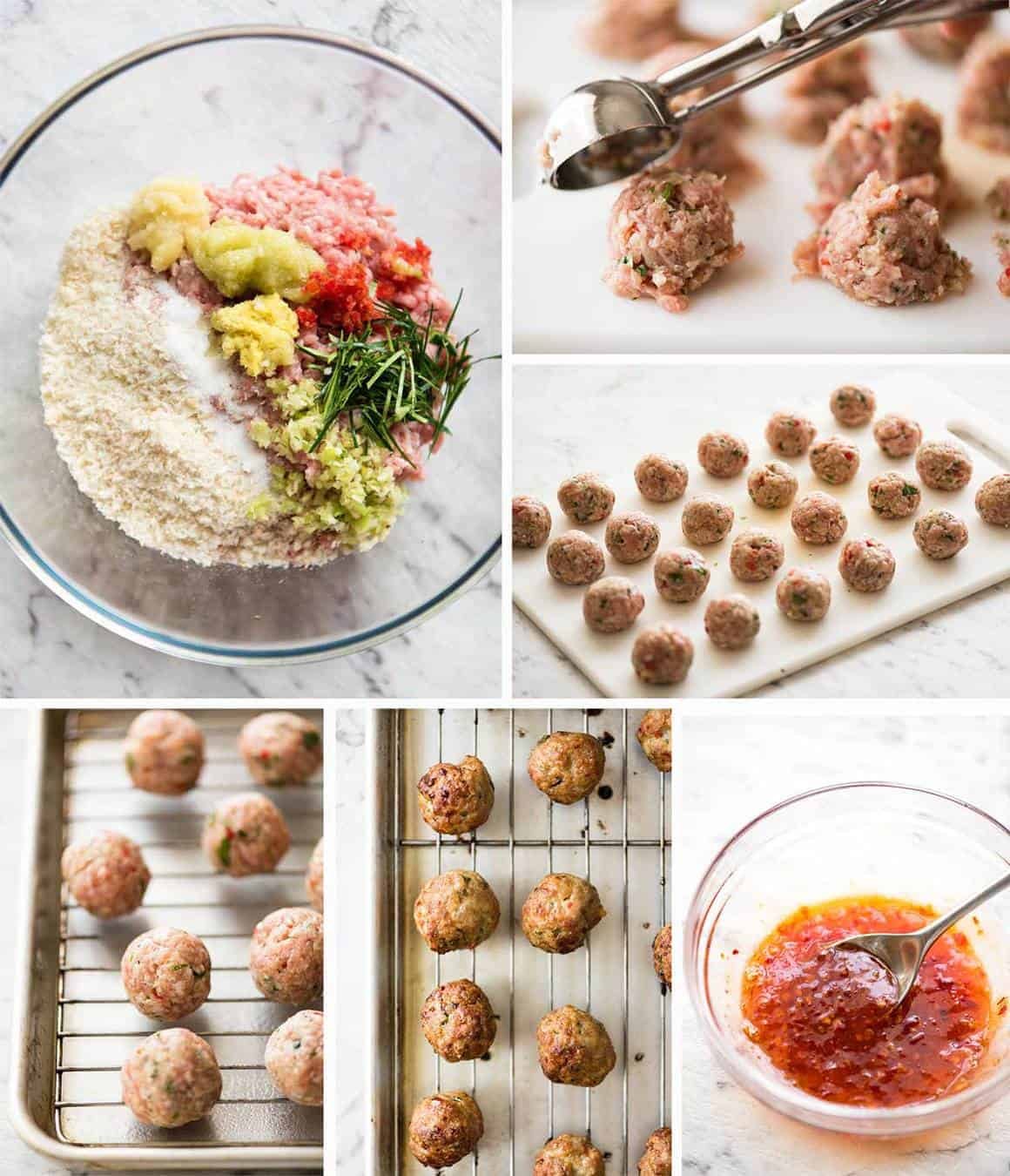 - Place Meatball ingredients in a bowl (except oil spray), mix well with your hands. Only use extra breadcrumbs if necessary β sometimes, chicken mince can be quite wet. Scoop up 1 slightly heaped tablespoon and roll into a ball (about 3cm / 1.25β³ diameter). (Note 6 for my way)